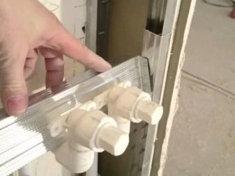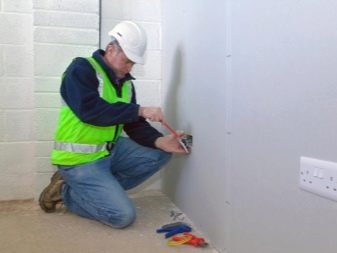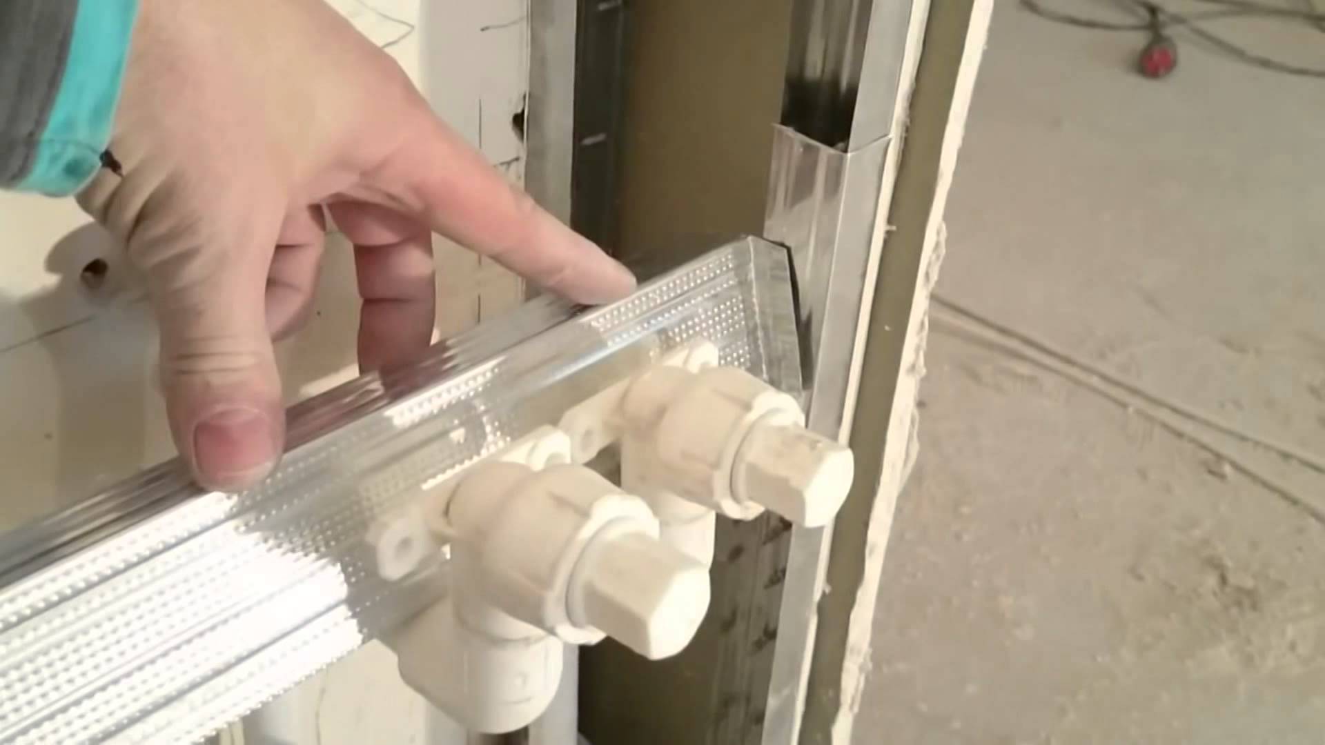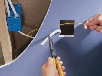 Die Installation erfolgt am besten vor der Installation der Trockenbauwand. Installieren Sie zuerst den Rahmen des Metallprofils, das an der Wandoberfläche befestigt ist. Um die Drähte zu schützen, können Sie ein Wellrohr verwenden.