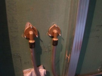 Außerdem wird Gummi auf die Rückseite des Wasserstutzens geklebt und erst dann an der Wand befestigt und mit selbstschneidenden Schrauben festgezogen. Der Raum zwischen der Wand und der Steckdose kann mit Kitt gefüllt werden.