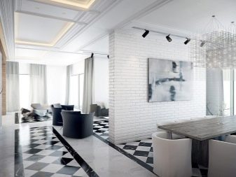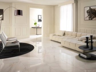 Ein Favorit der großen Dekoration von Wohnzimmern und großen Sälen ist die Fliese unter weißem Marmor. Weißer Marmor Fußboden- oder Wandverkleidungsmaterialien werden zu Symbolen des Feiern und Luxus-Status und Wellness, vor allem, wenn die Bodenplatten zadekorirovat. Die anerkannten Marktführer in der Herstellung von Kunstmarmor sind spanische, italienische und chinesische Hersteller. Marmorweiße Fliese im Innenraum ist eine klassische Innenarchitektur.