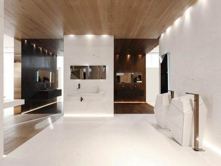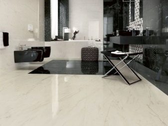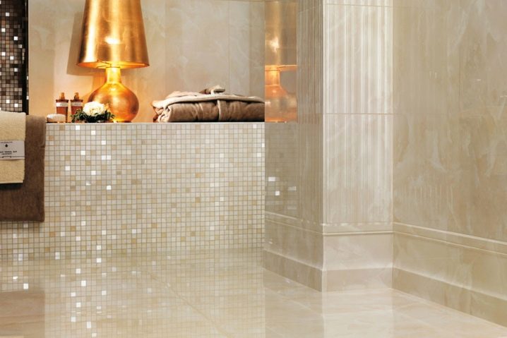 In den stilvollen Designlösungen muss man sich bewerben glänzende Fliesen im Badezimmer oder Pool. In diesem Fall, lappatirowannyj das Porzellan. Die Fertigungstechnologie beinhaltet den Wechsel von rohen, matten und polierten Bereichen mit der Vorherrschaft der letzteren. Der Glanz bleibt bestehen, aber die Oberfläche wird weniger rutschig.