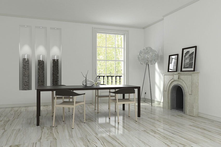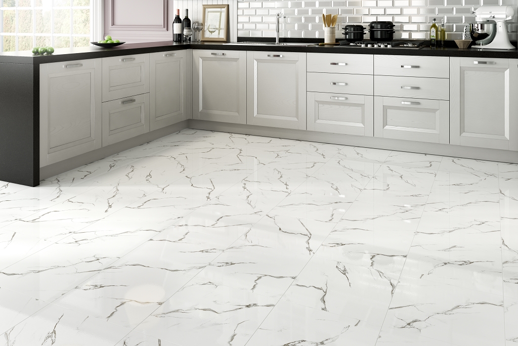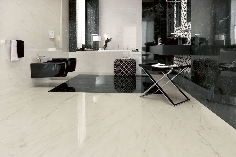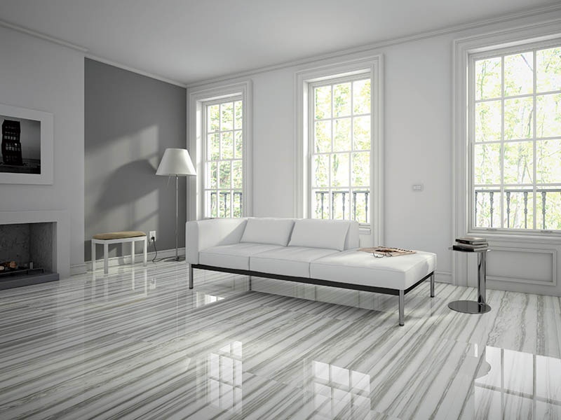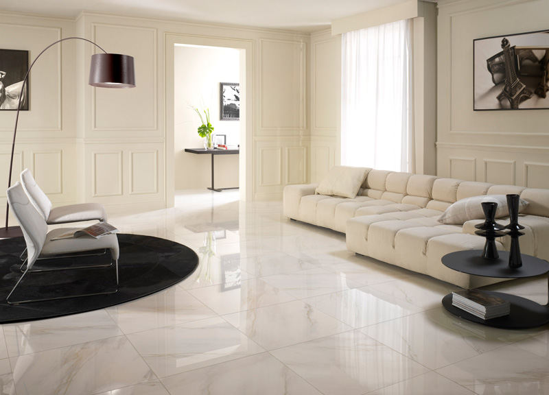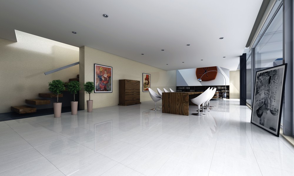 Poliert Fliese hat eine glänzende, glänzende Oberfläche. Es wird verwendet, um dem Inneren durch den Glanz des Polierens Feierlichkeit zu verleihen.Es ist vorzuziehen, das Produkt in trockenen Räumen zu verwenden, da die Oberfläche durch Feuchtigkeit rutschig wird. Es erfordert sorgfältige Wartung, um Flecken oder Staub zu entfernen, der auf einer glatten Fliese sehr auffällig ist.
