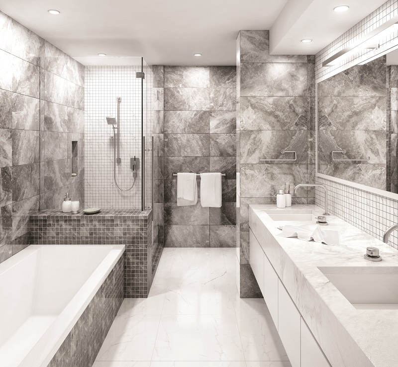 Die Fliese aus Feinsteinzeug ist in verschiedenen Größen erhältlich. Die gebräuchlichsten Parameter für den Gebrauch in Badezimmern und Toilettenräumen sind 300x300, 400x400, 500x500. Größere Fliesen in kleinen Räumen verengen den Raum optisch und bestehen aus unregelmäßig geschnittenen Fliesen, die keine dekorative Wirkung haben.