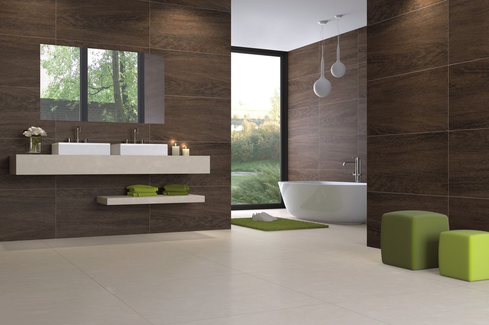 Zur Veredelung großer Flächen werden großformatige rechteckige Fliesen verwendet: 1200x600, 1200x1200 und mehr und für eine Terrassendiele - 200x1200, 250x1500. Die Vorbereitung der Basis für große Platten sollte sorgfältiger erfolgen. Die große Größe der Fliese mit der geringsten Unebenheit der Basis führt zu unerwünschten Vibrationen, und eine Beschädigung dieser Fliese wird auftreten. Der Vorteil ist eine geringe Anzahl von Fugen in der Steinplane und die Fähigkeit, eine nahtlose Beschichtung zu erzeugen, wenn rektifizierte Fliesen verwendet werden.