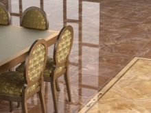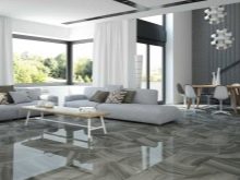 Das Aussehen dieser Beschichtung überschattet viele Mängel. Darüber hinaus ist die Pflege von glattem Keramikgranit einfach. Mit ihm können Sie schnell Flecken und Schmutz, die nicht in die Struktur der Böden erodiert sind, entfernen. Aber es kann Scheidung bleiben, wenn die Beschichtung falsch ist. Jetzt bieten Hersteller eine große Auswahl an eleganten Modellen mit einer großen Auswahl an Drucken und Mustern.