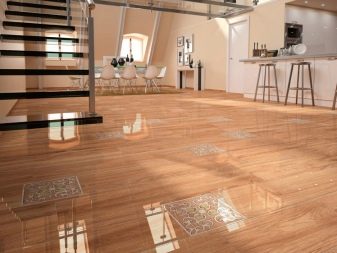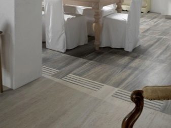 Das ganze Haus mit keramischen Granitfliesen zu verzieren wird nicht akzeptiert. In der Regel wird es zur Verlegung in getrennten Funktionsbereichen oder Räumen verwendet. Aber gleichzeitig verwendeten oft verschiedene Techniken der Kombination von Materialien und Texturen. Zum Beispiel, Modelle für Parkett oft kombiniert mit natürlichem Parkett.