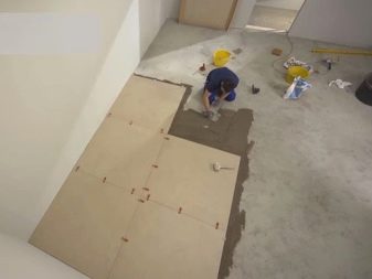 Ein Modell mit Parametern von 30 bis 30 cm weist auf das zulässige Vorhandensein von Fehlern und Unregelmäßigkeiten auf dem Boden hin. Kleine Kacheln erlauben es, sie zu verstecken.