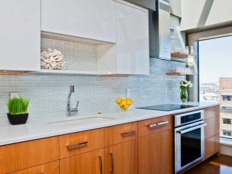 Das bedeutet, dass die Küche schön aussieht und das Kochen und Reinigen viel einfacher wird. In diesem Fall können Sie sowohl großes als auch kleines Porzellan verwenden, indem Sie die interessantesten Designmodelle auswählen.