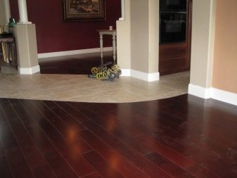 In der Regel versuchen sie bei der Kombination Materialien zu kombinieren, die völlig unterschiedliche Eigenschaften, aber leicht ähnliche Texturen haben. Daher ist es besser, die Keramikgranitfliese mit einer dickeren und haltbareren Beschichtung zu kombinieren, so dass die Böden das gleiche Niveau haben.