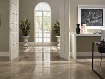 Porzellankacheln werden am häufigsten zum Veredeln des Bodens im Flur oder in der Küche verwendet. Dies liegt daran, dass es in diesen Bereichen häufig zu hoher Luftfeuchtigkeit und starken mechanischen Einwirkungen auf den Boden kommt. In diesen Räumen entstehen oft Pfützen oder nasse Verdunstungen auf dem Boden.