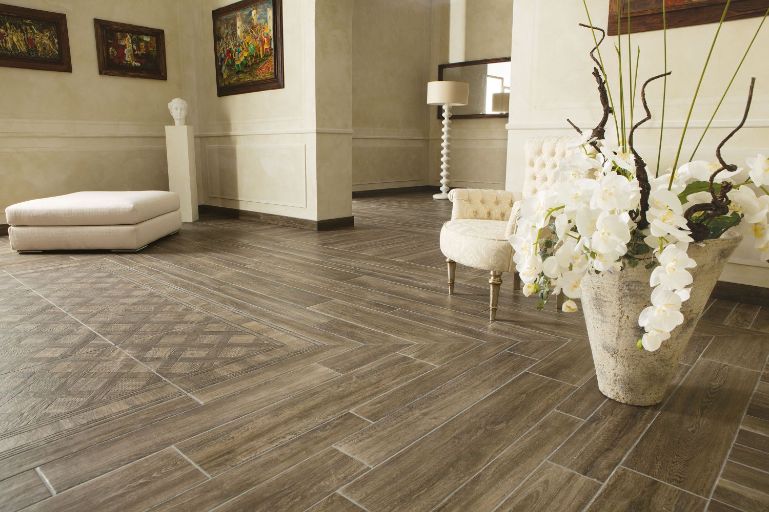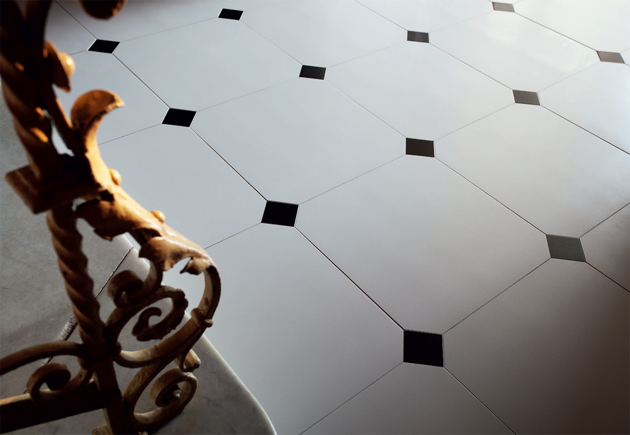 - Feinsteinzeug der zweiten Klasse wird zur Veredelung des Bodens in Wohnbereichen mit wenig Verkehr verwendet.
