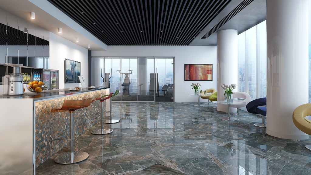 Poliertes Feinsteinzeug veredelt Böden und Wände - es wirkt auf allen Oberflächen sehr edel.Außerdem ist es nur in der kalten Jahreszeit traumatisch, und dieses Problem kann gelöst werden, indem Teppiche am Eingang platziert werden, so dass die Leute ihre Füße am Eingang abwischen.