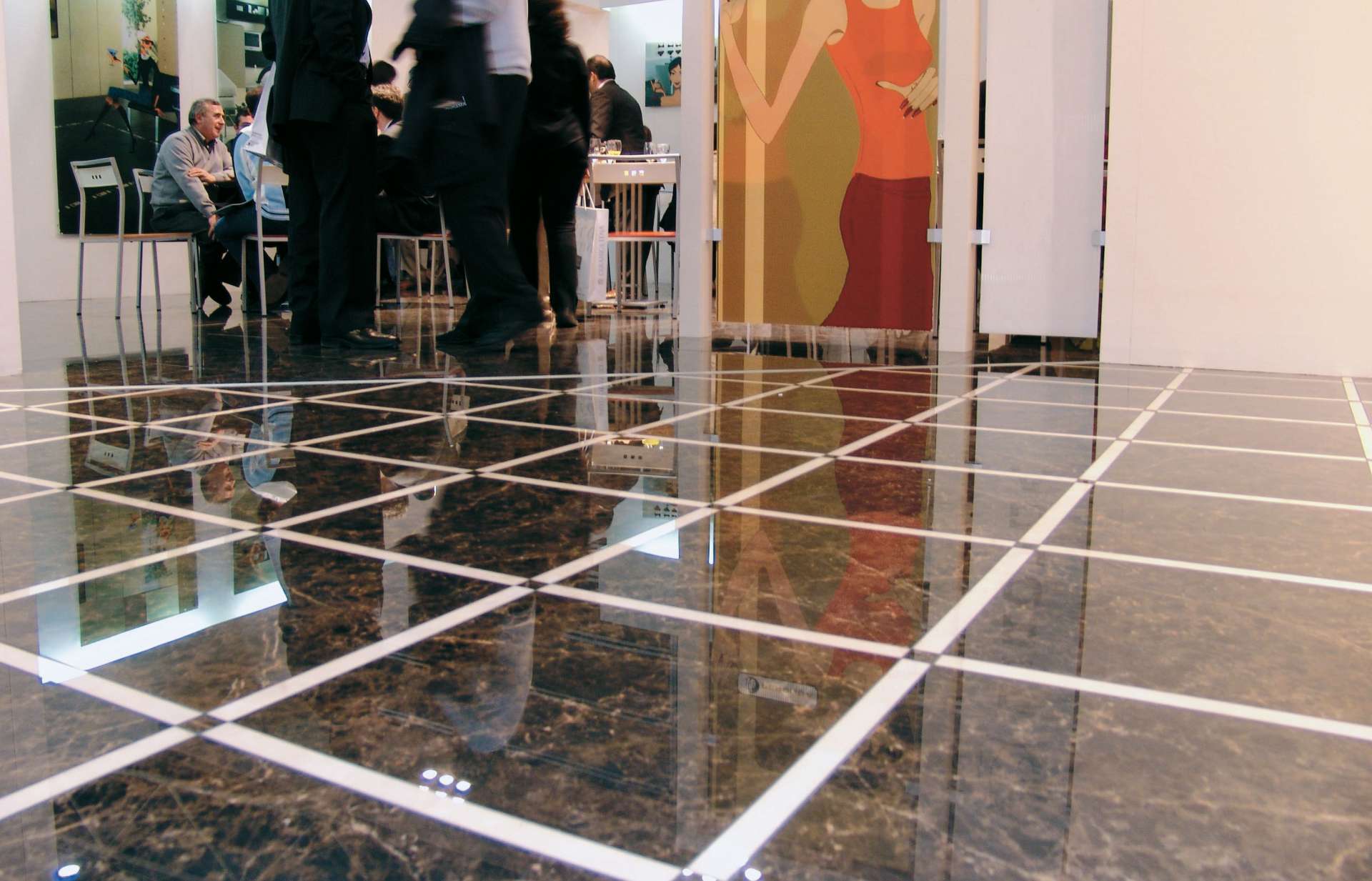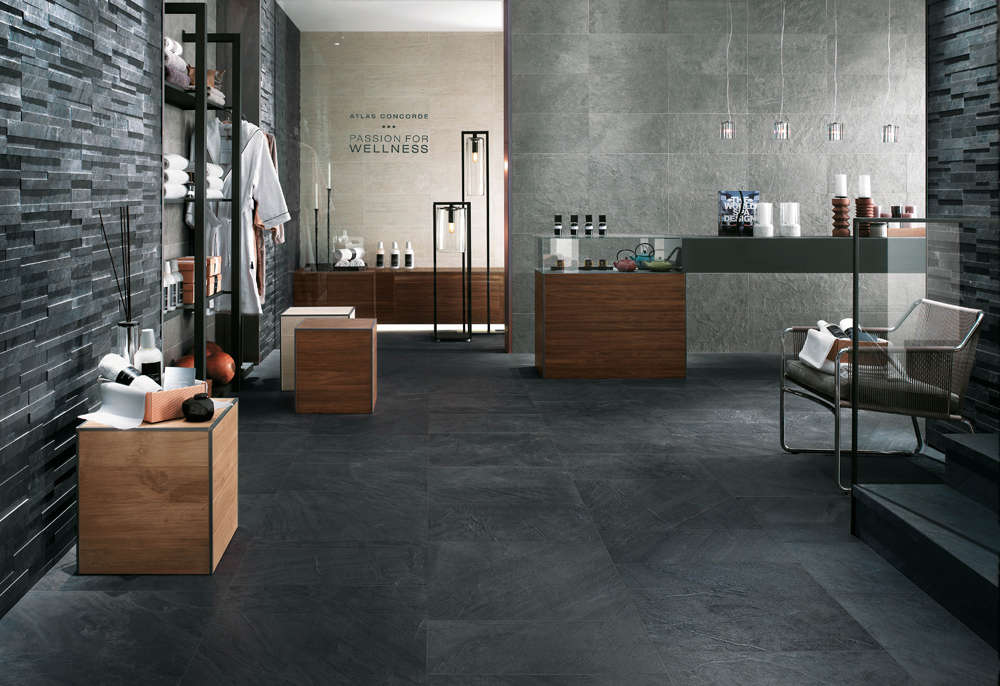 - Fünfte Feinsteinzeugfliesen sind für die Veredelung von Fußböden an Bahnhöfen und anderen stark frequentierten Orten konzipiert.