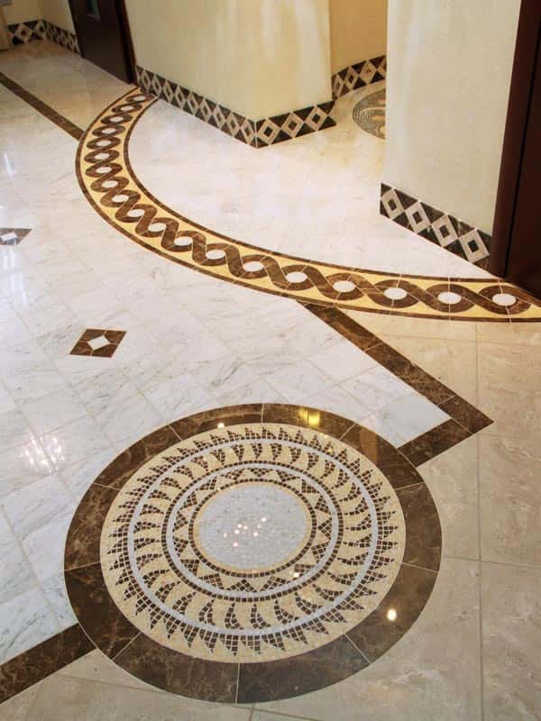 Dieses Feinsteinzeug gilt als das langlebigste und zuverlässigste, da die Fliesen eine Mindestgröße haben. Das Brechen oder Beschädigen von Fliesenelementen ist sehr schwierig. Mosaikböden sind gegen äußere Einflüsse nahezu unverwüstlich und daher langlebig. Darüber hinaus sieht diese Beschichtung äußerlich sehr eindrucksvoll aus.