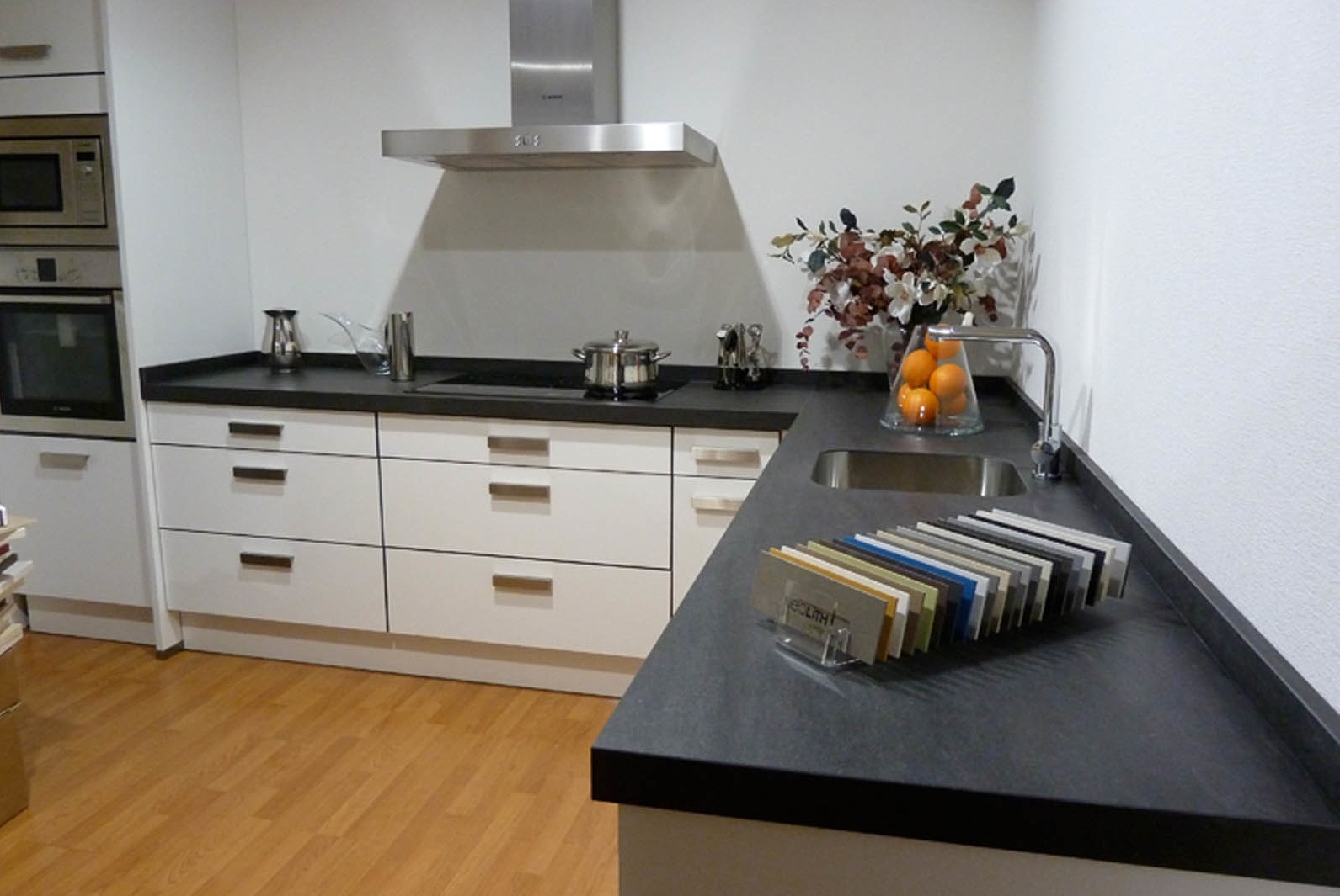 Das Material wird im Vorfeldbereich verlegt.. Dort ist es notwendig, dass Ölspritzer und Fett die Wände nicht verschmutzen. Und da es wasserdicht ist, wird Dampf es nicht verderben.