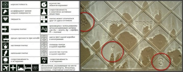- Eine Besonderheit einer solchen Fliese ist ihre Härte, die auch auf der Verpackung mit speziellen Markierungen angezeigt wird.