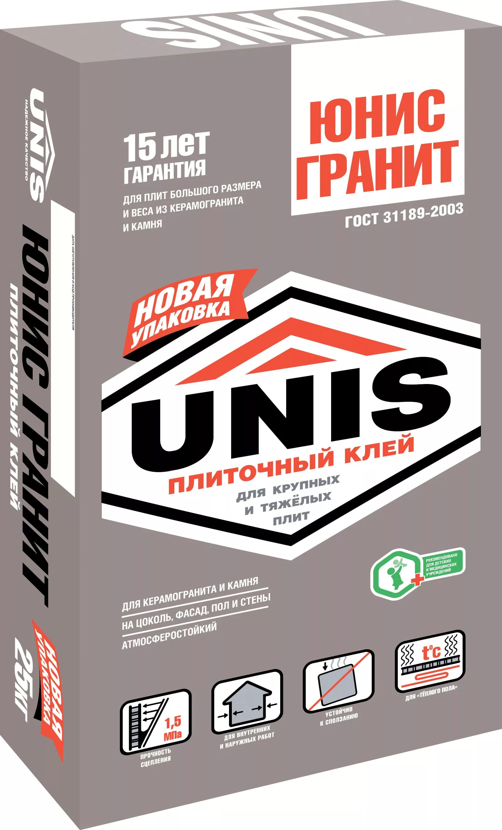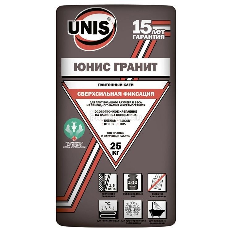 Name: Unis "Granit Kleber für die Verlegung von schweren Platten aus Feinsteinzeug, Keramik und Naturstein 25 kg."