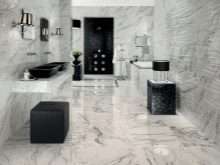 Es ist auch erwähnenswert, dass Porzellan Die Fliese, die eine Marmoroberfläche nachahmt, ist viel leichter als natürliches Material. Aus diesem Grund ist es bequemer damit zu arbeiten, zudem wird die Belastung der Basis deutlich reduziert.