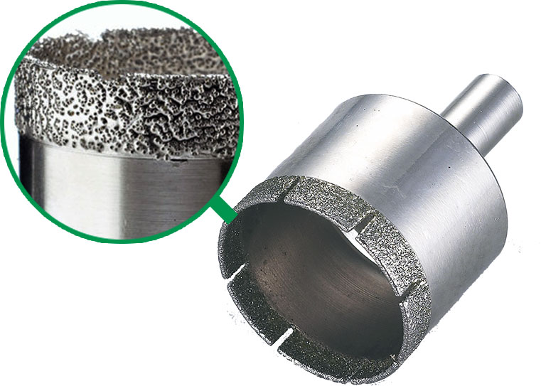 - Galvanisieren von Diamantsplittern am Rand des Cutters. Solche Bohrer sind für relativ weiche Steine geeignet. Am häufigsten werden zylindrische Bohrer auf diese Weise hergestellt.
