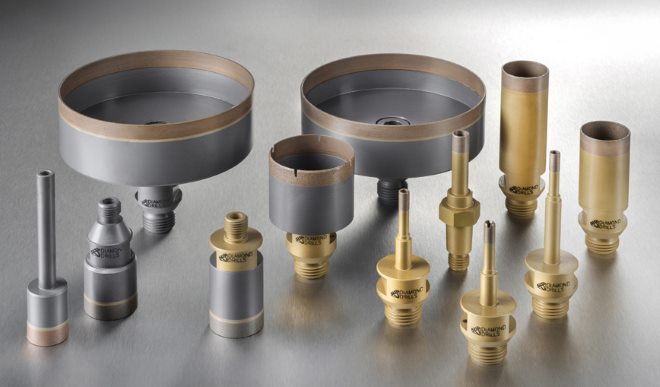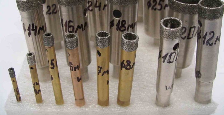 - Diamantkronen - Das sind zylindrische Bohrer zum Bohren von Löchern von 12 mm, aber nicht mehr als 20 mm.