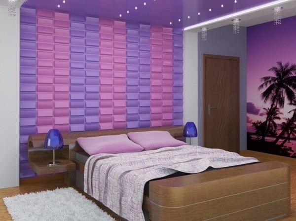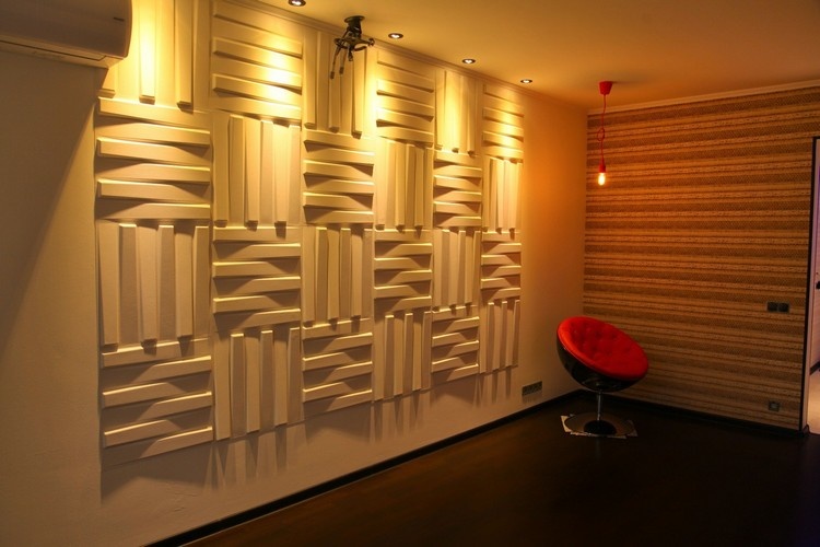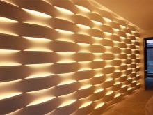 Die Paneele können entlang der Länge oder Breite des Raumes installiert werden, sowie beliebige Formen und Muster schaffen - Sie sind nur durch Vorstellungskraft begrenzt. Und um die Wirkung von 3D noch stärker hervorzuheben, sollten Sie die Panelbeleuchtung hervorheben, die nicht nur an der Decke oder an der Wand, sondern auch auf dem Boden angebracht werden kann. Alles hängt von dem verwendeten Muster und dem Design der Paneele ab.