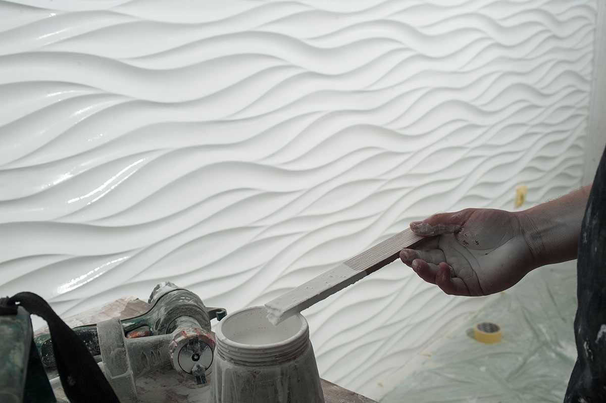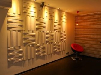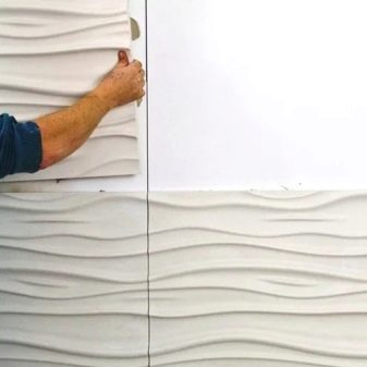 Bevor Sie den Raum mit einer voluminösen Faserplatte fertigstellen, brauchen Sie keine komplizierte Wandbearbeitung, das übliche grobe Finish ist in Ordnung. Und auch wenn es nicht perfekt glatt ist - das ist nur ein Plus, denn 3D-Panels sind in der Lage, eventuelle Oberflächenfehler zu verdecken, was ein unbestreitbarer Vorteil gegenüber anderen Materialien ist.