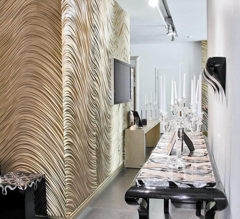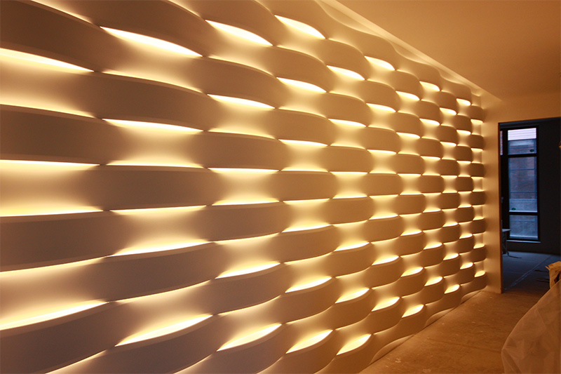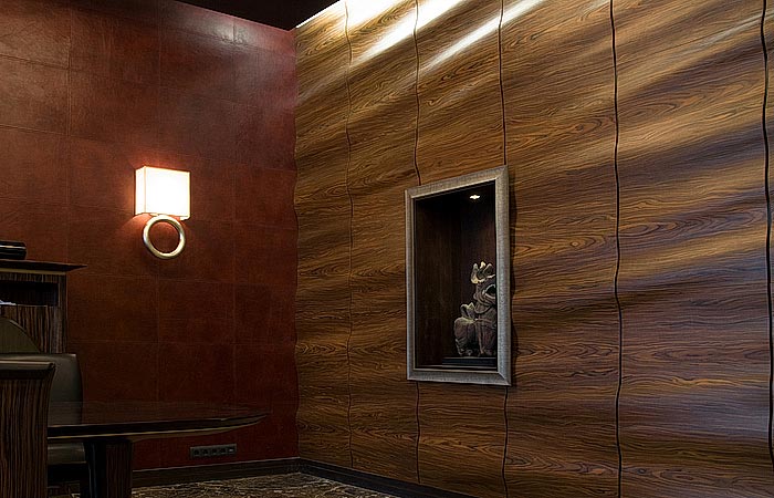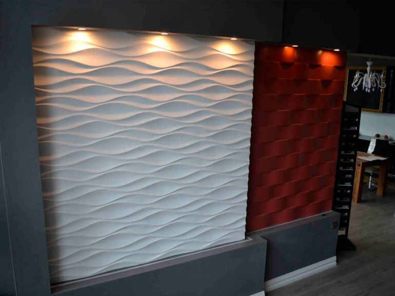 Eine innovative und sehr ungewöhnliche Art der Fertigstellung der Räumlichkeiten ist der Einsatz von 3D-MDF-Platten aus Faserplatten. Sie werden nicht nur wegen ihrer umweltfreundlichen und gesundheitlich unbedenklichen Ausrüstung geschätzt, sondern auch wegen ihres originellen Designs. Als Ergebnis der Bearbeitung auf speziellen Geräten enthält die Oberfläche der Platte dreidimensionale geometrische Effekte, Wellen, Faden und so weiter. Der Einsatz von MDF-Platten erfüllt nicht nur eine dekorative, sondern auch eine praktische Rolle als Wärmedämmung., weil sie auf der Kiste montiert sind, und der Raum zwischen der Wand und der Fassade, wenn gewünscht, ist der Kunde mit Isolierung gefüllt. Und dank spezieller Schutzbeschichtungen werden 3D-MDF-Platten ihrem Besitzer viele Jahre lang dienen.