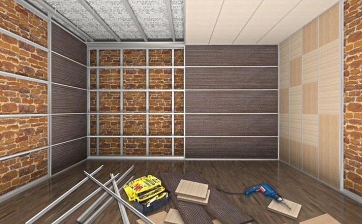 Wenn der Rahmen bis zu einer Dicke von 35 mm "frisst", wird die Montage auf Platten und Ecken ohne eine Lücke zwischen der Wand und der Platte ausgeführt. Sie können aber auch die Art der Befestigung verwenden, um zu kleben, aber in diesem Fall ist es unmöglich, ganze Blätter zu befestigen, und Platten maximale Größe 800x800 mm. Bei der Klebetechnik muss die Oberfläche vorbehandelt und ausgerichtet werden. Stellen Sie sicher, dass flüssige Nägel mit der Farbe der Platten übereinstimmen. Als Deckbeschichtung werden sowohl gewöhnliche Farben und Putze als auch Furniere aus wertvollen Holzarten, PVC-Folie oder Spezialbeschichtungen, auf die weiter unten eingegangen wird, verwendet.