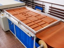 - Drücken. Dies geschieht, um mögliche Rückstände zu entfernen und dem Endprodukt Haltbarkeit und Zuverlässigkeit zu verleihen. Als nächstes wird die Platte auf die erforderliche Größe geschnitten und kühlt dann für eine Stunde ab.