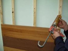 Eine der Möglichkeiten zur Befestigung der Auskleidung - Leim. Es ist schnell, einfach und bequem, aber es ist nur für flache Basen geeignet. Für die Arbeit werden spezielle Formulierungen verwendet, die die Platten sicher an den Wänden befestigen.Der Vorteil der Methode ist die Einsparung von Freiraum (ideal für kompakte Räume). Der Nachteil ist ein komplizierter Demontageprozess.