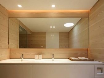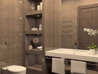 MDF-Produkte sind unterteilt in laminiert, lackiert und furniert. Für die Fertigstellung des Badezimmers und Badezimmers werden meistens die ersten beiden Optionen verwendet. Der letztere Typ ist wegen der Notwendigkeit einer sorgfältigen Vorbehandlung nicht so beliebt.