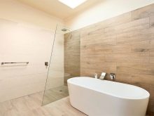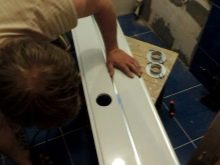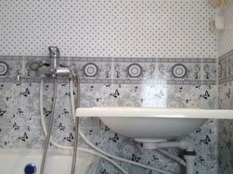 Eine zusätzliche Herausforderung ist die Installation von PVC-Platten in feuchtigkeitsbelasteten Räumen. Die primäre Oberfläche muss wasserdicht sein. Es wird auf eine vorbefeuchtete Unterlage aufgetragen. Wenn das Produkt trocken ist, wird es gegen Schimmel behandelt. Bei Verwendung einer Holzkiste sollte bei allen Berechnungen des Abstandes von der Wand eine Änderung von 0,2 - 0,3 cm berücksichtigt werden, die mit den wahrscheinlichen Abweichungen von der Idealform verbunden ist.