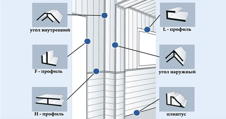 Neben zusätzlichen Werkzeugen ist der Wert des vorbereiteten Zubehörs zu beachten. Es wird notwendig sein, ein sogenanntes Startprofil zu haben, das hilft, die Ränder der Paneele an den Enden zu schließen. Neben ihm benötigen Sie ein Profil in Form des Buchstabens F, das die besten dekorativen Eigenschaften der Endblöcke bietet. Um verschiedene Paneele in einem einzigen Design zu verbinden, helfen spezielle Formteile. Seine Art von Profilen gibt es für Außen- und Innenecken.