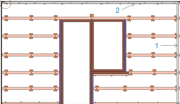 - die Latten müssen nicht nur an den Kanten der Wände platziert werden, sie müssen die Öffnungen der Türen und Fenster umgeben;