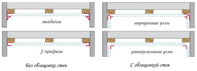 Jede Ecke, jede Verbindung sollte mit Formteilen geschlossen werden. Mit ihrer Hilfe wird das Einfügen von Paneelen durch Kanten auf beiden Seiten gemacht, und alle Schnittpunkte werden auf einmal angenehmer aussehen. Die letzte Phase der Arbeit ist die Installation eines dekorativen Formteils entlang des gesamten Umfangs der Decke und Wiederholen an der Unterseite des Sockels. Wenn die auf diese Weise installierten Paneele sorgfältig betrieben werden, behalten sie ihr attraktives Aussehen für lange Zeit und müssen nicht repariert werden.