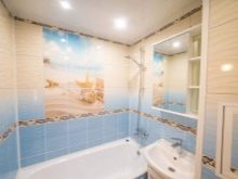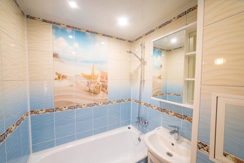 Beim Kauf von Verkleidungsmaterial müssen Sie nicht nur an die Zeichnung denken, sondern auch daran, wie sie positioniert wird. Das Bild kann auf der gesamten Wand platziert werden und kann nur über dem Badezimmer liegen, wodurch eine Betonung auf einem Bereich entsteht. Es muss daran erinnert werden, dass die vertikalen Zeichnungen den Raum höher machen, aber die horizontalen, im Gegenteil, "unterschätzen" die Decke.