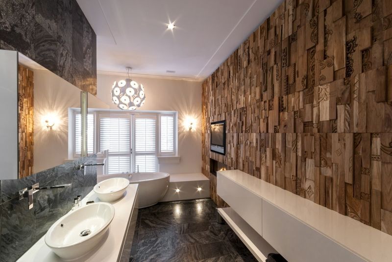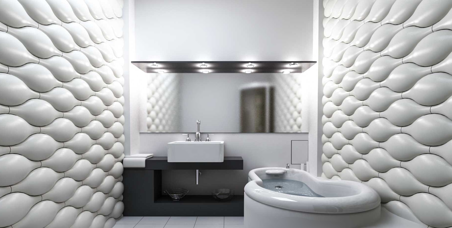 Plastikverkleidungen mit einem 3D Muster in der Badezimmerinnenarchitektur