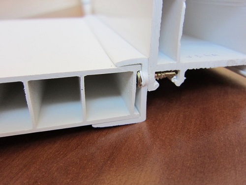 Noch vor der Installation von Hilfskomponenten, um ihre erforderliche Anzahl zu berechnen. Beide Ecken und andere Formteile werden normalerweise einzeln verkauft. Sie werden in Übereinstimmung mit der Farbe von PVC sowie unter Berücksichtigung ihrer Dicke ausgewählt. Planken zur Montage auf mit Zink beschichteten Nägeln oder herkömmlichen Schrauben. Bei der Montage ist es notwendig, sich um mindestens 5 Millimeter vom Bauteilrand zurückzuziehen. Wenn das Element extern ist, wird es mit einer Zusammensetzung auf Basis von Polymeren auf die Platten geklebt. Erwähnenswert ist auch, dass Profile bei Bedarf einfach zugeschnitten und auf die benötigte Größe reduziert werden können. Damit sie parallel ausgerichtet und platziert werden, wird ein regulärer Thread verwendet.