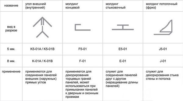 Die Installation von PVC-Paneelen ist ohne Verbindungselemente verschiedener Formen nicht möglich. Diese Kunststoffteile werden meist als Profile, Formteile oder Bauteile bezeichnet. Es gibt verschiedene Varianten dieser Elemente, von denen jedes für einen bestimmten Zweck ausgelegt ist. Ohne die Verwendung von Formteilen wird Design nicht ganz, ordentlich und vollständig aussehen. Und natürlich, ohne ein Profil zu starten, wird die Installation von PVC-Platten überhaupt nicht beginnen.