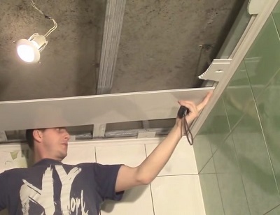 Wenn die Installation von PVC-Platten an der Decke erfolgt, dann soll jede Platte zu Profilen auf drei Seiten gerollt werden, so dass die lange Seite in der anfänglichen Formung ist. Verwenden Sie einen Schraubendreher, um Fehler zu korrigieren. Auch hier ist die letzte Platte so angebracht, dass die beiden Seiten in Profilen erscheinen.