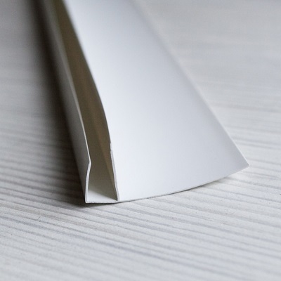 Zusätzlich zu starten, gibt es andere Arten von Formteilen. F-förmig wird verwendet, wenn es notwendig ist, das Andocken der Enden schön zu "schließen". Zum Beispiel können es die Ecken sein, in denen zwei PVC-Platten, Fenster oder Türen, andere Schrägen oder die Kombination von zwei verschiedenen Materialien, beispielsweise Kunststoffplatten und Tapeten, verbunden sind.Mit anderen Worten, es wird verwendet, wenn man sich in eine andere Ebene bewegt. Nach dem Namen zu urteilen, kann man vermuten, dass dieses Andockprofil dem Buchstaben F ähnelt.