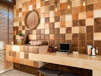 - Stilvoll und elegant im Dekor wirken Modelle, die Naturholz nachbilden.Diese Option verleiht dem Interieur Natürlichkeit und Ästhetik. Das Produkt wird perfekt mit Baumwollvorhängen und Möbeln aus grobem Holz kombiniert.