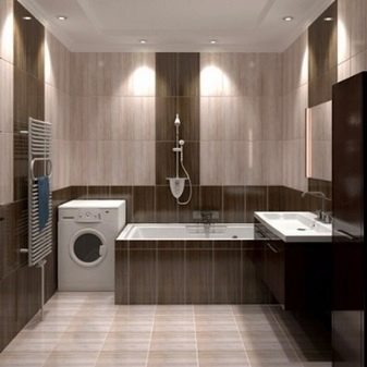 Abhängig von der Größe des Raumes, dem Muster auf den Leinwänden, den Eigenschaften der Raumaufteilung und dem Stil wählen sie die am besten geeignete Methode aus. Die gebräuchlichsten Optionen sind die ersten beiden, da das Badezimmer in Mehrfamilienhäusern standardmäßig angeordnet ist.