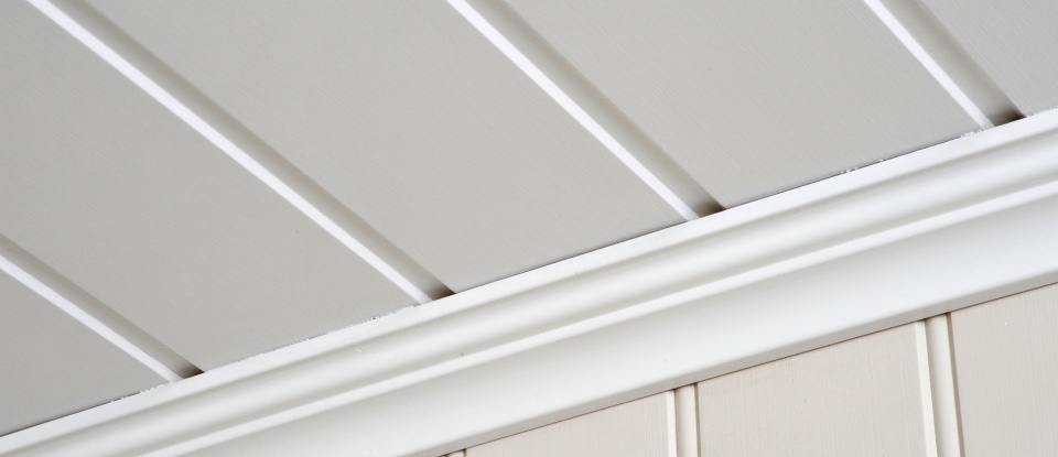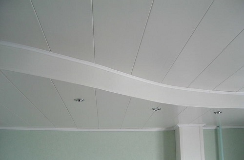 Die Arbeit mit der Bildung der Decke der PVC-Paneele beginnend, ist es in erster Linie notwendig, den Anfangstyp des Bandes zu verwenden. So genanntes Formteil in Form des Buchstabens P, das die Platte vom Hintern absperrt. Ähnliche Streifen werden verwendet, wenn die Platten an den Wänden angebracht werden. Dort werden sie aber schon für eine andere Aufgabe benötigt - eine elegantere Gestaltung von Tür- und Fensteröffnungen.