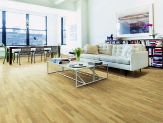Eiche Kalima. Die Deckschicht besteht aus einer Eichensortierung, was darauf schließen lässt, dass das Holzmuster fast keine Knoten aufweist. Die Farbe dieses Parketts ist ziemlich hell, die Streifen sind mit Mattlack bedeckt. Die Seiten der Parkettplatte haben keine Fase, so dass Sie eine glatte Beschichtung erzielen können. Ein solches Modell kann jedes Interieur auffrischen.
