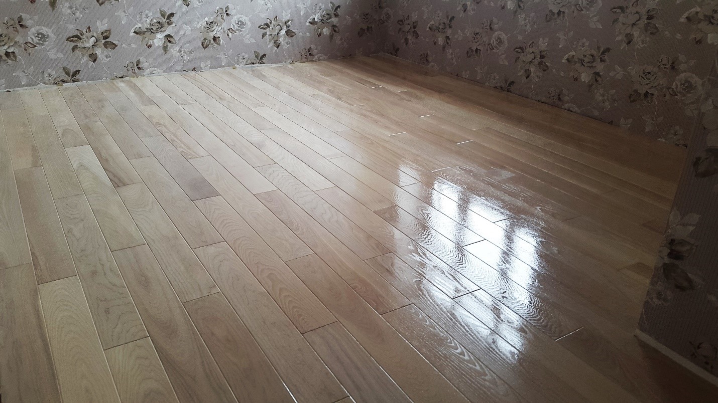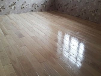 Das Brett aus dem Massiv, sowie jedes andere Holzmaterial mag keine Feuchtigkeit. Diese Nuance ist wichtig bei der Nassreinigung von Böden. Daher sollte die Oberfläche der Beschichtung bei ihrer Fertigstellung trocken gewischt werden. Da die Parkettbänder außen mit Lack beschichtet sind, sollte deren Schutzschicht regelmäßig aktualisiert werden, wobei dieser Vorgang mindestens einmal jährlich durchgeführt wird.