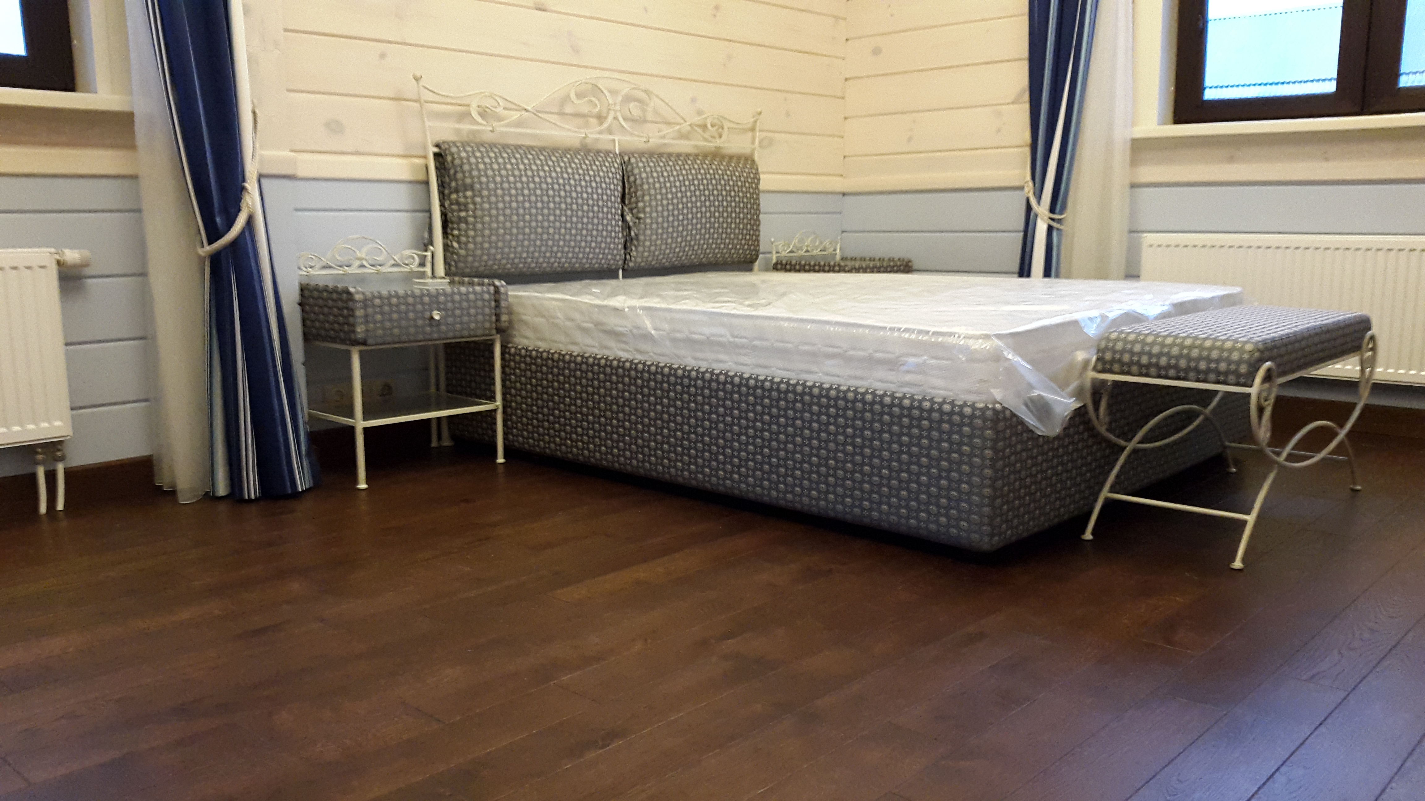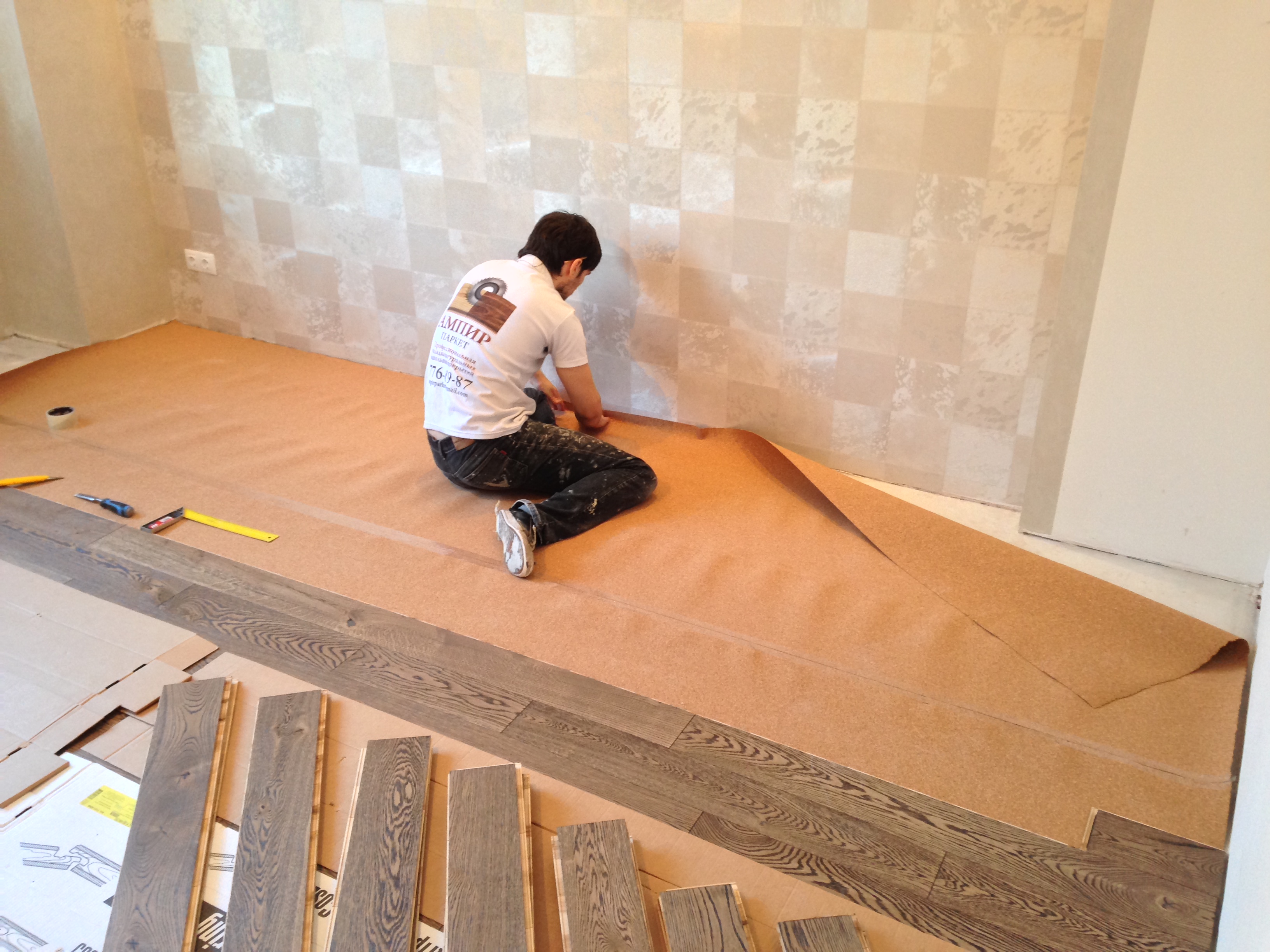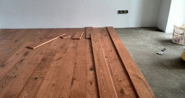 Die Installationsarbeiten können in erdgeschossigen und darüber liegenden Räumen durchgeführt werden. Um dies zu tun, kleben Sie das Brett auf einen Holzsockel. Wenn der Raum groß ist, dann verwenden Sie Klammern oder Schrauben, um ihn in den breiten und langen Streifen zu installieren.