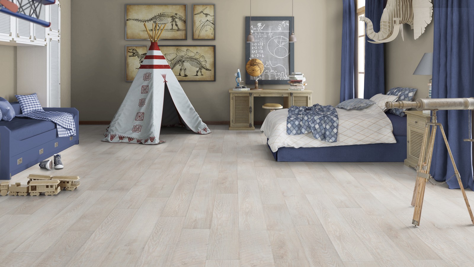 Für Kinderzimmer ist es am besten, Parkett natürliche Farbe zu installieren. So wird es nicht zu sehr gegen den allgemeinen Hintergrund des Raumes auffallen und den Raum mit Wärme erfüllen. Wie für die Flure, die richtige Wahl für sie wäre der Boden einer Reihe von Walnuss Farbe.