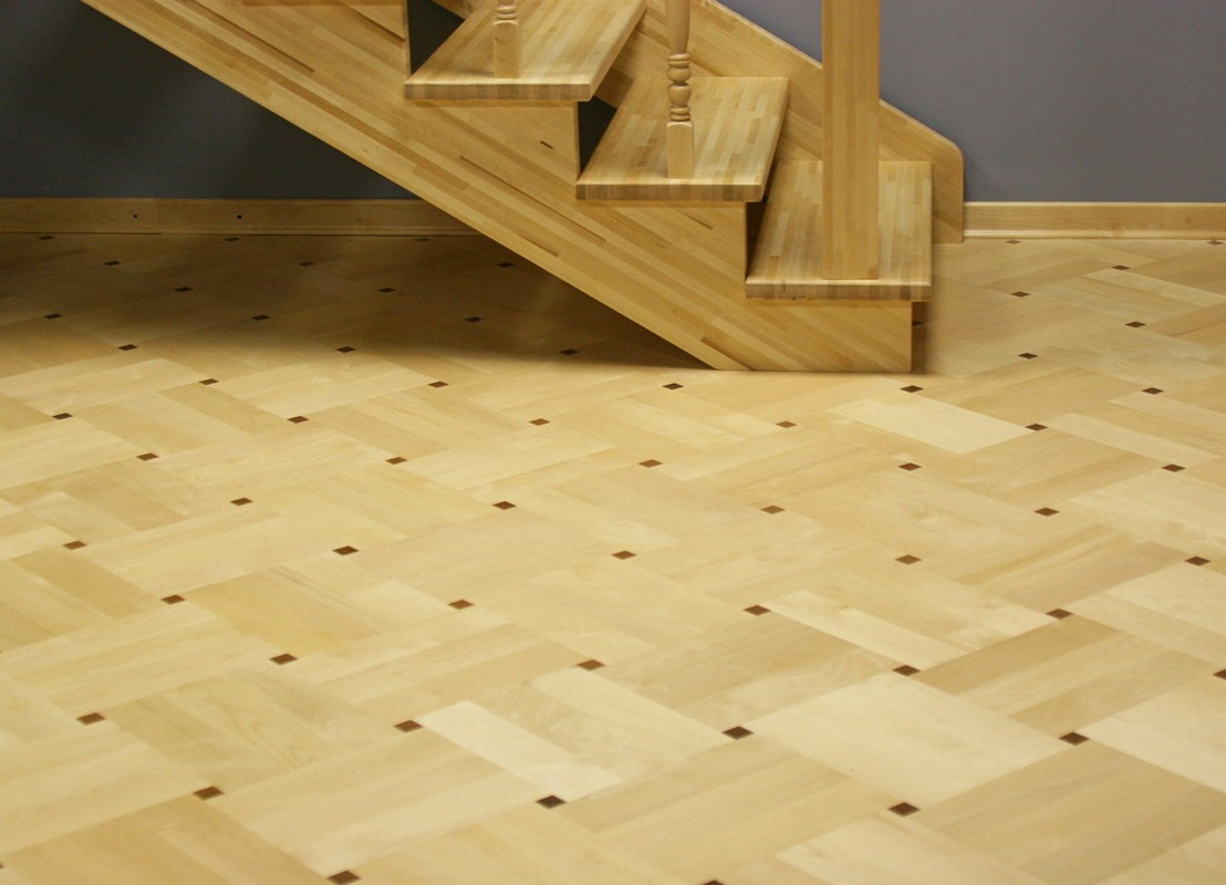 Parkett hat eine Dicke von ca. 7 mm. Jede Parkettbretterbreite kann von 3 bis 8 cm und in der Länge bis zu 40 cm betragen.Teilparkett ist eine der teuersten Optionen, die jedoch viele Jahre dauern wird. Die Beschichtung ist gemacht aus wertvollen Holzarten, zum Beispiel, Eiche, Wenge, Asche, Ahorn und andere, und diese Bäume verbinden sich oft miteinander. So können Sie interessante und ungewöhnliche Kompositionen erstellen und das Stück Parkett in Form eines schönen Musters auslegen.