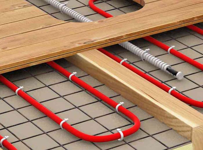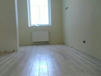 Der Boden muss schwimmend verlegt werden. Bei dieser Verlegeart verformt sich das Holz nicht unter Einwirkung von Feuchtigkeit und bei Temperaturänderung. Nicht die letzte Rolle spielt die Fußbodenheizung. Denken Sie daran, dass Holz leicht entflammbar ist, dh es besteht Brandgefahr.