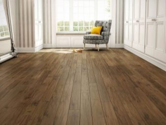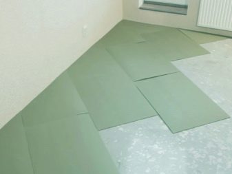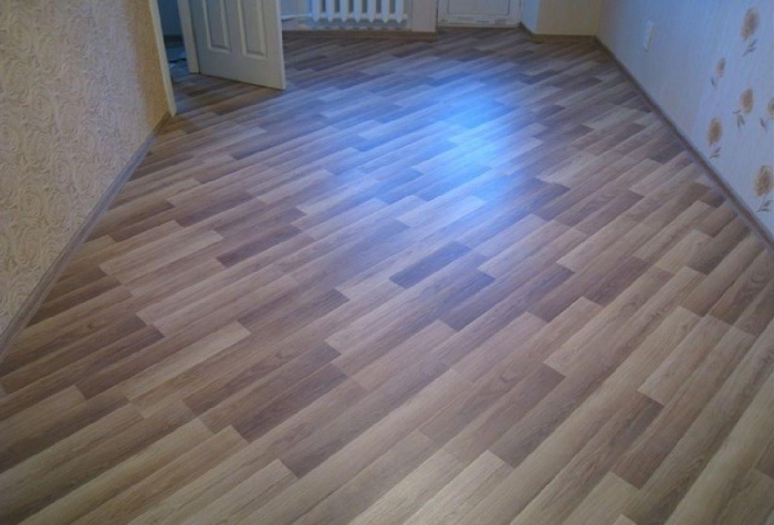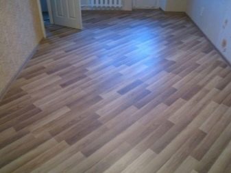 Die Popularität dieses synthetischen Materials aufgrund seiner demokratischen Wert, einfache Installation, ausgezeichnete Wasserabweisung. Material verschlechtert sich nicht unter der Einwirkung der chemischen Umgebung. Leider gibt es auch einen signifikanten Nachteil - während des Betriebs kann sich das Material absetzen, was bedeutet, dass sich Luft zwischen der Basis und der Bodenplatte befindet, was zum Entstehen von Knarzen führen kann.